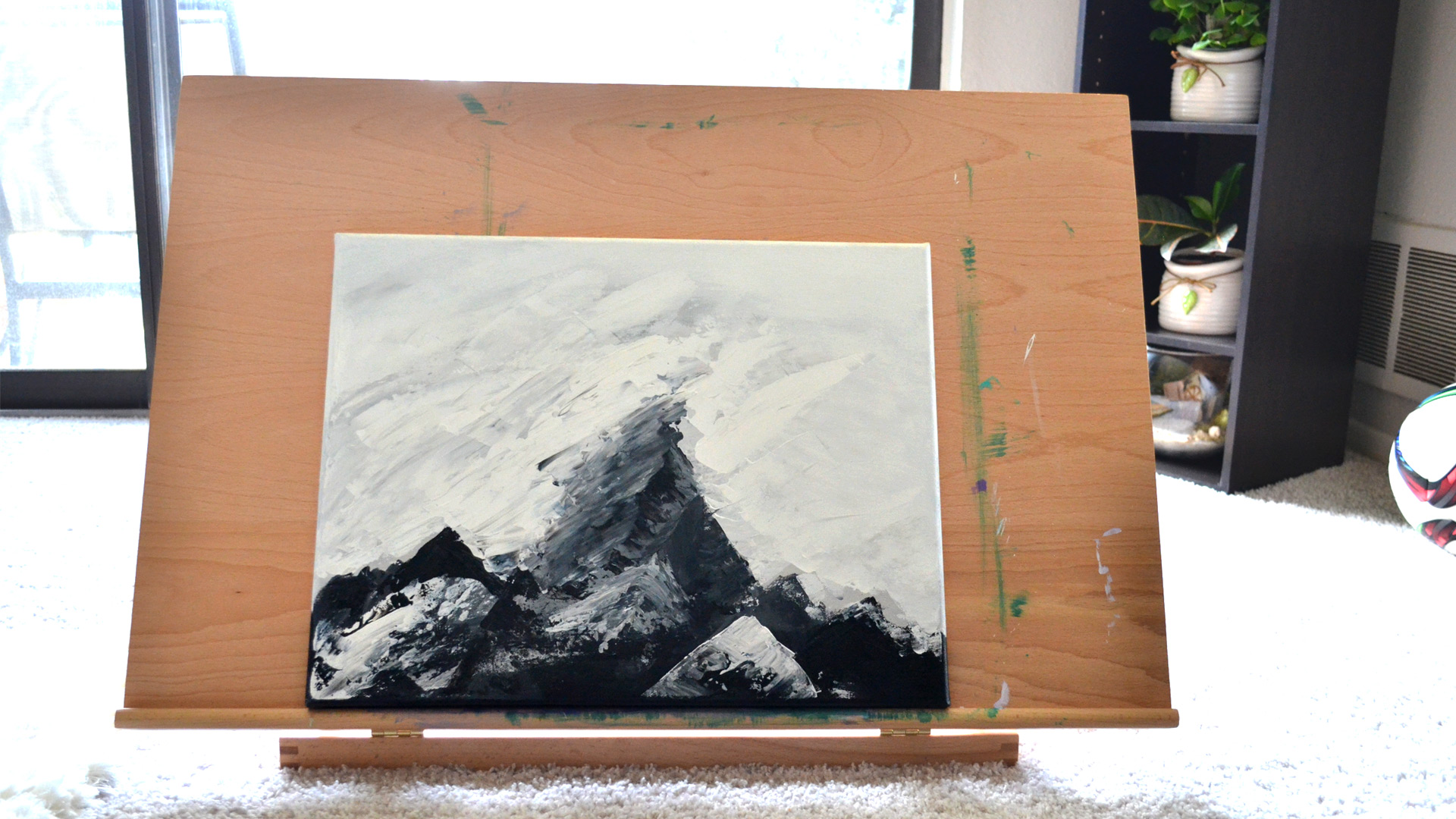 Immerse yourself in the tranquil beauty of a snow-covered mountain landscape, captured by my brushstrokes. Experience the serenity of winter as the majestic peaks don their white attire. Let this painting transport you to a realm of stillness and awe-inspiring wonder.